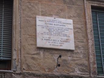 Keywords: Casa natale Ettore Bastianini.JPG en Plaque affixed by the Contrada of Pantera on the façade of Ettore Bastianini's birth house in via Paolo Mascagni in Siena on the 25th anniversary of his death The plaque says «In this house was born and spent his childhood Ettore Bastinini renowed lyrical artist and 'victorious captain who in donating to the entire world the treausers of his singing forever kept a deep love tie with his Siena and his Contrada» it Targa apposta sulla facciata della casa natale di Ettore Bastianini in via Paolo Mascagni a Siena da parte della Contrada della Pantera nel 25° anniversario della morte del celebre baritono che ne fu capitano vittorioso own PMM82 2010-03-20 Plaques in Siena Ettore Bastianini Plaques installed in 1992 Here-was-born plaques in Siena Here-lived plaques in Siena Plaques to people in Italy 1922 here-was-born plaques Paolo Mascagni |