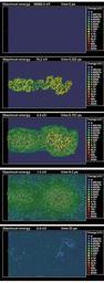 Keywords: Cascade sequence.png en Image sequence of a collision cascade in the heat spike regime produced by a 30 keV Xe ion impacting on Au under channeling conditions obtained by molecular dynamics computer simulations The image shows a cross section of two atomic layers in the middle of a threedimensional simulation cell Each sphere illustrates the position of an atom and the colors show the kinetic energy of each atom as indicated by the scale on the right The atom size is also proportional to the energy so that higher-energy atoms are somewhat larger Own Knordlun 2008-11-08 Check categories 2008 November 11 en wikipedia Collision_cascade Condensed matter physics Sequence |