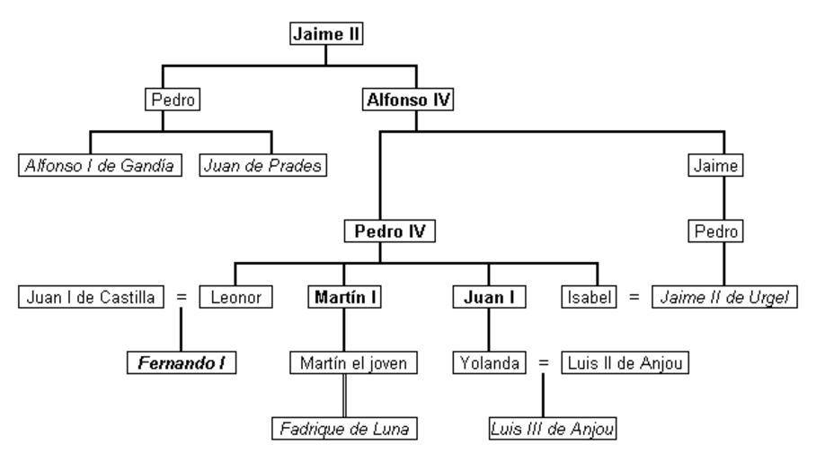 Keywords: Caspe.gif es Árbol genealógico de los aspirantes a la corona de Aragón durante el compromiso de Caspe own Nachoseli 2009-01-31 Compromiso de Caspe