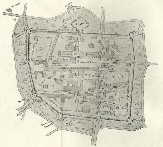 | Keywords: Castel Goffredo-Mappa.jpg en Castel Goffredo city map from 1500 it Castel Goffredo pianta approssimativa del paese al principio del 1500 Scansione dal volume/Scan from book Francesco Bonfiglio Notizie storiche di Castelgoffredo Geroldi Brescia 1922 Francesco Bonfiglio 1846-1929 1922-08-01 PD-Scan ImageNote 1 444 276 563 238 1417 1274 2 Il borgo di Castelvecchio Castellum vetus รจ indicato dalle crocette ImageNoteEnd 1 ImageNote 2 1077 446 76 104 1417 1274 2 Ospedale Vecchio XVI secolo ImageNoteEnd 2 ImageNote 3 599 130 195 132 1417 1274 2 Rivellino ImageNoteEnd 3 ImageNote 4 166 217 164 106 1417 1274 2 Torrione di Sant'Antonio ImageNoteEnd 4 ImageNote 5 234 775 136 123 1417 1274 2 Torrione dei Disciplini ImageNoteEnd 5 ImageNote 6 1156 527 38 40 1417 1274 2 Porta Picoloca ImageNoteEnd 6 ImageNote 7 204 503 89 66 1417 1274 2 Torrione e Porta Poncarali ImageNoteEnd 7 ImageNote 8 1096 255 115 110 1417 1274 2 Torrione Cavallara ImageNoteEnd 8 ImageNote 9 1073 994 121 121 1417 1274 2 Torrione di San Michele ImageNoteEnd 9 ImageNote 10 467 951 127 121 1417 1274 2 Torrione Fontana del Moro ImageNoteEnd 10 ImageNote 11 217 486 176 98 1417 1274 2 Borgo Poncarale ImageNoteEnd 11 ImageNote 12 805 983 93 83 1417 1274 2 Porta del Povino ImageNoteEnd 12 ImageNote 13 667 282 49 38 1417 1274 2 Porta di sopra ImageNoteEnd 13 Art in Castel Goffredo Old maps of Lombardy Maps of the province of Mantua |