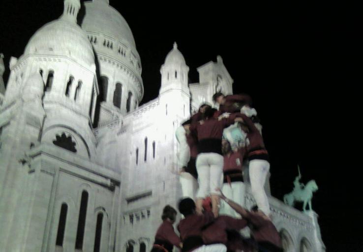 Keywords: Castellers a Montmartre.jpg ca Els castellers d'Esparreguera muntant un castell a Montmartre a Paris França a la nit Van passar el matí fent una rua els grallers tocant i muntant pilars i castells durant dues hores al matí seguits per nombrosos fans i curiosos own Slastic 2009 Castellers d'Esparreguera Basilique du Sacré-Cœur de Montmartre at night |