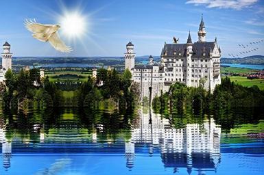 MAKE A MEME View Large Image castle fantasy bird sol day reflection birds nature