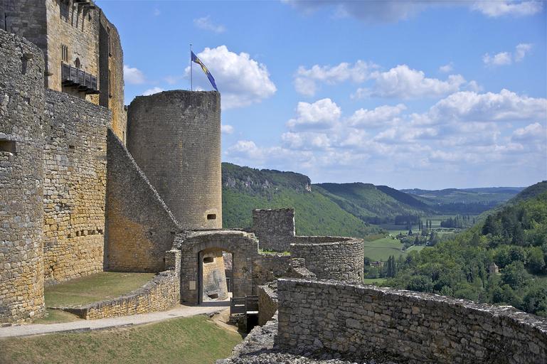 Keywords: castle france sky forest trees valley building architecture old stone outside summer spring beautiful