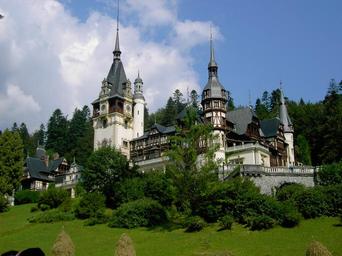 Keywords: castle peles mountain fir trees azure green