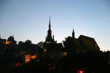 Keywords: castle sunset fortress historical landmark outside beautiful gothic orange black scene silhouette sky church architecture