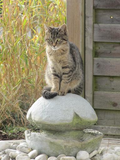 Keywords: cat animal domestic cat fountain garden pet mackerel