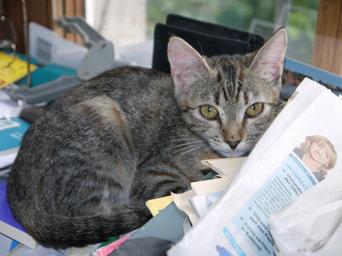 Keywords: cat baby grey hiding place cute