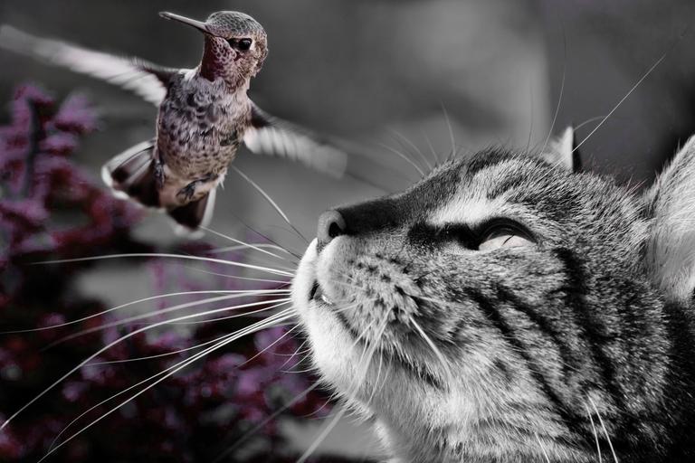 Keywords: cat bird hunting prey nature animal kollibri animal world beobacheten observation hunt animal portrait domestic cat head drawing wildlife photography predator fur head close mammal view wild animal portrait creature pet cat face