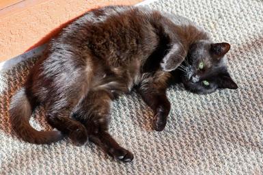 Keywords: cat black playful black cat animal pet feline domestic green eyes mammal young looking portrait lying fluffy fur
