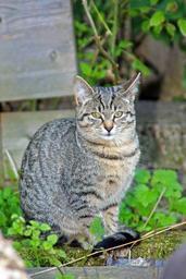 Keywords: cat cat's eyes animals green grass grey cat ears wood tomcat in free portrait animal