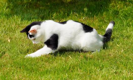 Keywords: cat domestic cat young playful garden out young cat kitten animal hunt black and white