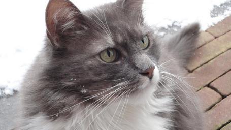 Keywords: cat ears pet animals fur domestic cat cat face close cat's eyes fluffy sweet knuffig mieze whiskers young cat cute snow wintry winter cattail animal world black and white animal