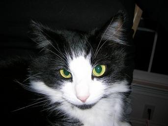 Keywords: cat face portrait pet domestic tuxedo black white feline cute eyes head close up looking kitty furry
