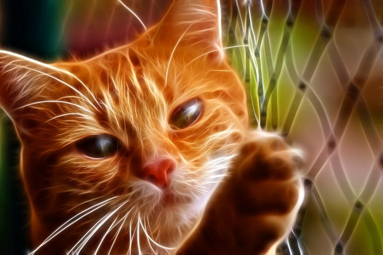 Keywords: cat feline pet animal gata cat face look whiskers cat nose cat eyes feline look animals fauna yellow eyes hairy claws kitten fractal design cute orange neon orange eyes grating