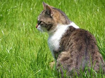 Keywords: cat grass pets animals fluffy cat pet closeup green