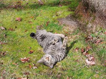 Keywords: cat grass rolling sun outside feline nature green pet outdoor lawn