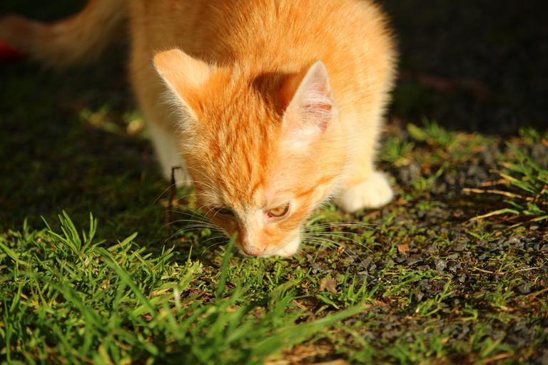 Keywords: cat kitten cat baby young cats mackerel red mackerel tabby autumn grass
