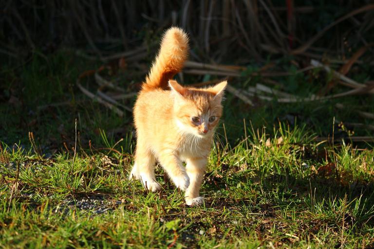 Keywords: cat kitten cat baby young cats mackerel red mackerel tabby autumn grass