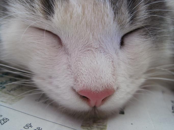Keywords: cat kitten face whiskers white and grey soft fluffy ragdoll cross sweet face eyes closed asleep relaxed