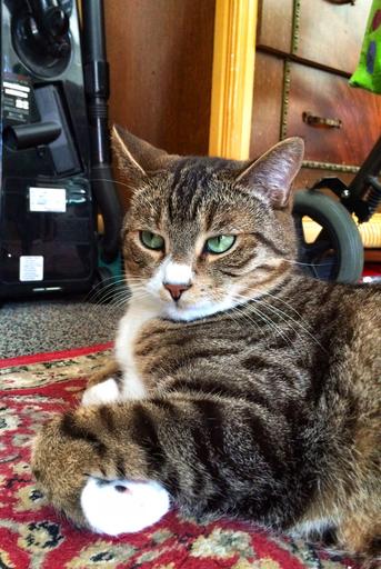 Keywords: cat kitty pet animal feline domestic tabby face striped adorable