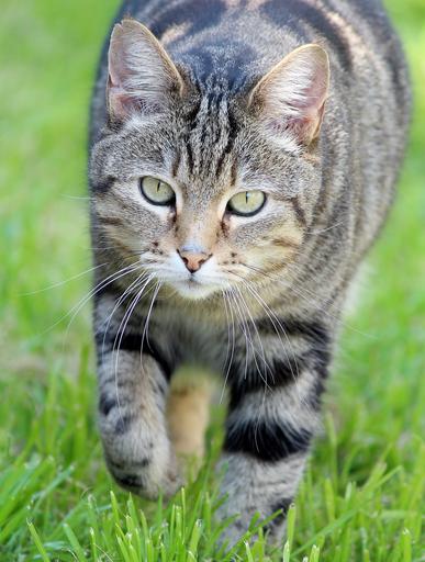 Keywords: cat pet garden sneak run grass paws fur animal portrait mieze animal nature cat's eyes mackerel wildlife photography