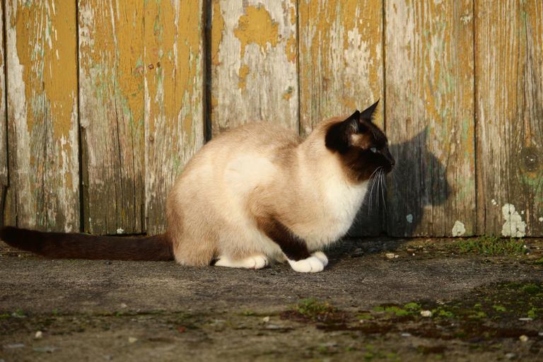 Keywords: cat siamese cat siam breed cat grass wall wood kitten