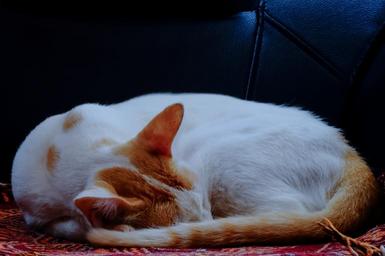 Keywords: cat sleeping brown spots cute animal rest pet paws white