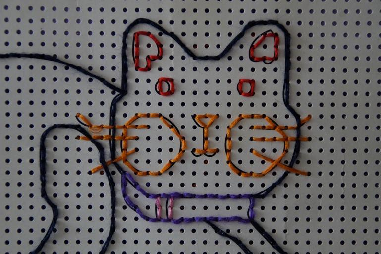 Keywords: cat tinker embroidery kindergarten child children sewn embroidered sew image hand labor children's room