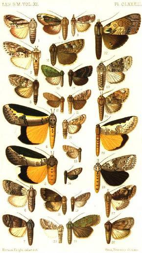 Keywords: CATALOGUE-BM-PLATE CLXXXIII.jpg en PLATE CLXXXIII 1 Pucialia argentea f Vol XI p 335 Honduras 2 P mariva m p 336 Peru 3 P chlorographa m p 337 Fr Guiana 4 Eligma duplicata f p 327 Uganda 5 E hypsoides f p 328 S Nigeria 6 Pucialia poliopepla f p 337 Brazil 7 P rectilinea m p 338 Fr Guiana 8 Gadirtha costipallens f p 344 New Guinea 9 G poliochroa f p 350 Queensland 10 Casandria olivaris f p 354 Mexico 11 C metaphaea m p 358 Panama 12 C chirica f p 358 Costa Rica 13 C steniptera m p 359 Fr Guiana 14 C araea f p 359 Costa Rica 15 Gadirtha hades f p 348 Queensland 16 G aroa f p 347 New Guinea 17 Casandria purpurascens f p 355 Costa Rica 18 C arcuata m p 357 Costa Rica 19 C haematopis f p 359 Argentina 20 C filifera m p 360 Bahamas H8982 Collomena filifera Wlk 1857 21 Gadirtha elongata f p 349 Assam 22 Pucialia similis m p 339 Venezuela 23 Gadirtha pulchra f p 341 Queensland 24 G glaucograpta m p 342 Gold Coast 25 Eligma malagassica f p 329 Madagascar 26 E orthoxantha f p 331 Queensland 27 Gadirtha exacta m p 343 New Guinea 28 G turneri f p 344 New Guinea CATALOGUE OF THE NOCTUIDAE IN THE COLLECTION OF THE BRITISH MUSEUM Sir GEORGE F HAMPSON Bart 1903-1913 PD-old Catalogue of Lepidoptera Phalaenae in the British Museum Vol 11 Butterflies of Venezuela in plates |