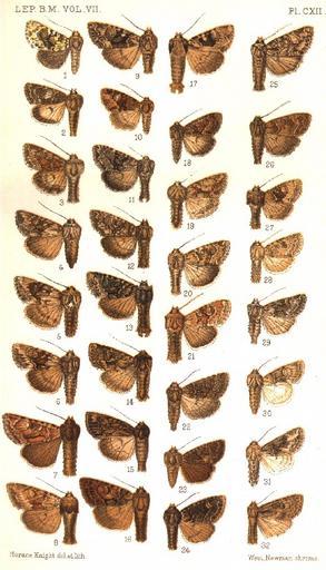 Keywords: CATALOGUE-BM-PLATE CXII.jpg en PLATE CXII 1 Trachea macerata f Vol VII p 164 Manitoba H9619 Phosphila miselioides Gn 1852 a macerata Sm 1902 2 T semilunata m p 164 Washington H9352 Apamea semilunata Grt 1881 3 T inordinata m p 165 Massachusetts H9353 Apamea inordinata Morr 1875 4 T cinefacta f p 166 Washington H9357 Apamea cinefacta Grt 1881 5 T centralis m p 167 Oregon H9354 Apamea centralis Sm 1891 6 T unita f p 168 Oregon H9355 Apamea unita Sm 1904 7 T sora m p 169 Alberta H9339 Apamea auranticolor Grt 1873 b sora Sm 1903 8 T barnesi m p 169 Wyoming H9339 Apamea auranticolor Grt 1873 a barnesi Sm 1899 9 T lona f p 170 Washington H9362 Apamea indocilis Wlk 1856 10 T turbulenta f p 171 New York H9618 Phosphila turbulenta Hbn 1818 11 T allecto m p 173 Alberta H9419 Oligia mactata Gn 1852 a allecto Sm 1899 12 T mactata m p 174 New York H9419 Oligia mactata Gn 1852 13 T ferens m p 175 Alberta H9362 Apamea indocilis Wlk 1856 a runata Sm 1899 14 T separans m p 175 New York H9362 Apamea indocilis Wlk 1856 a runata Sm 1899 15 T perpenoa m p 176 Arizona H9345 Apamea perpensa Grt 1881 16 T commixta m p 178 Japan 17 T indocilis m p 179 New York H9362 Apamea indocilis Wlk 1856 18 T tusa m p 181 California H9405 Oligia tusa Grt 1878 19 T divesta m p 181 Vancouver H9419 Chytonix divesta Grt 1874 20 T cerivana m p 182 Alberta H9364 Apamea finitima Gn 1852 a cerivana Sm 1900 21 T finitima m p 183 New York H9364 Apamea finitima Gn 1852 22 T fumosa f p 185 Colorado H9527 Aseptis fumosa Grt 1879 23 T fumeola f p 186 California H9530 Aseptis fumeola Hamp 1908 24 T binotata m p 186 Br Columbia H9532 Aseptis binotata Wlk 1865 25 T adnixa m p 187 Nevada H9533 Aseptis adnixa Grt 1880 26 T paviae f p 188 California H9534 Aseptis paviae Stkr 1874 27 T indirecta m p 188 Washington H9401 Oligia indirecta Grt 1875 28 T catalina m p 189 California H9528 Aseptis catalina Sm 1899 29 T characta f p 190 Nevada H9543 Aseptis characta Grt 1880 30 T jocasta f p 190 Dakota H9398 Eremobina jocasta Sm 1900 31 T erica m p 191 Utah H9543 Aseptis characta Grt 1880 a erica Sm 1905 32 T pausis m p 192 California H9535 Aseptis pausis Sm 1899 CATALOGUE OF THE NOCTUIDAE IN THE COLLECTION OF THE BRITISH MUSEUM Sir GEORGE F HAMPSON Bart 1903-1913 Apamea auranticolor2 JPG Apamea auranticolor3 JPG Apamea centralis JPG Apamea cinefacta JPG Apamea finitima2 JPG Apamea finitima JPG Apamea indocilis2 JPG Apamea indocilis3 JPG Apamea indocilis4 JPG Apamea indocilis JPG Apamea inordinata JPG Apamea perpensa JPG Apamea semilunata JPG Apamea unita JPG Aseptis adnixa JPG Aseptis binotata JPG Aseptis catalina JPG Aseptis characta2 JPG Aseptis characta JPG Aseptis fumeola JPG Aseptis fumosa JPG Aseptis pausis JPG Aseptis paviae JPG Chytonix divesta JPG Eremobina jocasta JPG Oligia indirecta JPG Oligia mactata2 JPG Oligia mactata JPG Oligia tusa JPG Phosphila miselioides JPG Phosphila turbulenta JPG Trachea commixta JPG PD-old Catalogue of Lepidoptera Phalaenae in the British Museum Vol 4 |