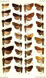 Keywords: CATALOGUE-BM-PLATE LXXII.jpg en PLATE LXXII 1 Agrotis cinctithorax m Vol IV p 454 Cape Colony 2 A catenifera f p 455 Congo 3 A inopinata m p 456 Colorado H10928 Graphiphora haruspica Grt 1875 b inopinatus Sm 1898 4 A sierrae m p 456 Colorado H10928 Graphiphora haruspica Grt 1875 a sierrae Harv 1876 5 A squalida m p 457 W Turkestan 6 A unimacula m p 458 New York H10928 Graphiphora haruspica Grt 1875 7 A jalapa m p 459 Mexico 8 A havilae m p 460 Nevada H10927 Spaelotis havilae Grt 1880 9 A lucens f p 460 Japan 10 A deplorata m p 461 W Turkestan 11 A clemens f p 462 California H10925 Rhyacia quadrangula Zett 1839 a clemens Sm 1890 12 Eucoptocnemis tripars m p 465 Indiana H10695 Wlk 1856 13 Episilia perdita m p 469 Tierra del Fuego 14 E dissociata m p 471 Patagonia 15 E coppingeri m p 472 Patagonia 16 E hilaris m p 472 Texas H10956 Xestia bollii Grt 1881 17 E fungorum m p 473 New York H10998 Choephora haruspica G R 1868 18 E madida f p 473 Mexico 19 E molepa m p 473 S Brazil 20 E straminea m p 474 W China 21 E vittata m p 476 Tibet 22 E postfusca m p 477 Ceylon 23 E haesitans m p 478 Rocky Mts H10668 Agrotis haestitans Wlk 1857 24 E manifesta f p 480 New Jersey H10666 Agrotis manifesta Morr 1875 25 E olivascens f p 481 Sikhim 26 E coturnicula m p 482 Amurland 27 E littoralis m p 483 Colorado H10992 Paradiarsia littoralis Pack 1867 28 E monochromata f p 483 New Hampshire H10993 Hemipachnobia subporphyrea Wlk 1858 a monochromatea Morr 1874 29 E xanthostola m p 483 Falkland Is 30 E colima m p 484 Mexico 31 E serraticornis m p 485 Castille 32 E senescens m p 485 W Turkestan CATALOGUE OF THE NOCTUIDAE IN THE COLLECTION OF THE BRITISH MUSEUM Sir GEORGE F HAMPSON Bart 1903-1913 PD-old <gallery> File CLBM_04_Pl72 png Larger version </gallery> Catalogue of Lepidoptera Phalaenae in the British Museum Vol 4 |