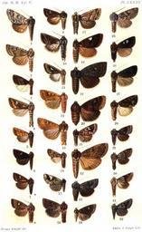 Keywords: CATALOGUE-BM-PLATE LXXXV.jpg en PLATE LXXXV 1 Hadula longicornis m Vol V p 246 E Turkestan 2 H insolita m p 248 W Turkestan 3 Nephelistis furva m p 252 Mexico 4 Hydroeciodes pexa m p 254 Mexico 5 H azteca f p 256 Mexico 6 H cauta f p 256 Costa Rica 7 H leucogramma f p 257 Brazil 8 Chabuata notata m p 259 Illinois H10628 Tricholita notata Stkr 1898 9 C fistula m p 261 California H10630 Tricholita fistula Harv 1878 10 C mutina m p 261 Mexico 11 C inconspicua m p 261 Arizona H10593 Hexorthodes inconspicua Grt 1883 12 C angulifera m p 266 Kashmir 13 C albicosta m p 267 Punjab 14 C ociosa m p 269 Ecuador 15 C amoeba f p 269 Br E Africa 16 C dulcinea m p 270 Chili 17 C subsocia m p 271 Brazil 18 C albirena f p 271 Brazil 19 C amp1a f p 272 Brazil 20 C rectilinea f p 273 Argentina 21 Lasianobia decreta m p 276 Tibet 22 Manobia grisea m p 277 Japan 23 Hysia inconstans f p 279 New Zealand 24 H senatoria m p 281 Arizona H10603 Hexorthodes senatoria Sm 1900 25 H gussata m p 282 Alberta H10493 Orthosia segregata Sm 1893 26 H niphadopa f p 283 Hawaii 27 H anthracias m p 284 Hawaii 28 H violascens f p 286 N China 29 H modesta m p 286 New York H10569 Ulolonche modesta Morr 1874 30 H disticha m p 287 Texas H10573 Ulolonche disticha Morr 1875 31 H dilecta m p 287 Colorado H10572 Ulolonche dilecta Hy Edw 1885 32 H fasciata m p 288 New Mexico H10575 Ulolonche fasciata Grt 1873 CATALOGUE OF THE NOCTUIDAE IN THE COLLECTION OF THE BRITISH MUSEUM Sir GEORGE F HAMPSON Bart 1903-1913 PD-old Catalogue of Lepidoptera Phalaenae in the British Museum Vol 4 |
