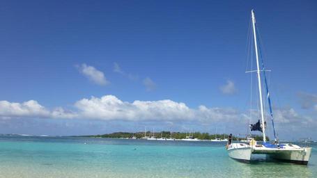 Keywords: catamaran sailing vessel ship sea holiday beach sky ocean blue landscape water clear boot bank coast nature indian ocean mauritius sand island