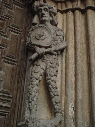 Keywords: Catedral Ávila portada principal detalle2.JPG Portada principal de la catedral de Ávila escultura derecha Own 2007-06 Manuel P L de Corselas Manuel de Corselas http //www arssummum es ARS SUMMUM Centro para el Estudio y Difusión Libres de la Historia del Arte West facade of Ávila cathedral Church sculptures in the province of Ávila Wild man in art |