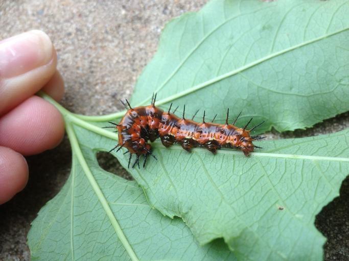 Keywords: caterpillar gulf fritillary bug fritillary leaf butterfly crawling spikes