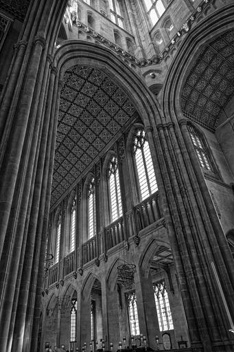 Keywords: cathedral transept ceiling arches stonework religious architecture arched decorative
