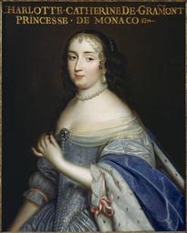 Keywords: Catherine-Charlotte de Gramont.jpg Catherine-Charlotte de Gramont 1638-1678 Prinzessin von Monaco und Herzogin de Valentinois sowie Mätresse des französischen König Ludwig XIV Catherine-Charlotte de Gramont 1638-1678 Princesse de Monaco et dame de Valentinois ainsi que Maitresse du roi de France Louis XIV century 17 Oil on canvas cm 63 52 Institution Versailles Versailles 000PE007069 other versions PD-art-old-100 Charles Beaubrun 17th-century portrait paintings in the Musée national du Château de Versailles Catherine Charlotte de Gramont 17th-century portrait paintings not categorised by year 17th-century oil portraits of sitting women at three-quarter length Ermine clothing in art Females with clothing with pearls in art Females with hair with pearl jewellery in art Females with pearl necklaces and earrings in art Golden inscriptions in portrait paintings Images from Réunion des musées nationaux |