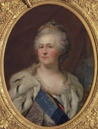 Keywords: Catherine II of Russia after Lampi (c. 1780, Hillwood museum).jpg en Portrait of Catherine II Made by Lampi Johann Baptist the Elder __After On view in Mansion Exhibit - Front Hall About this object Portrait of Empress Catherine II shown three quarters length and facing left Her hair is gray and she wears a small crown in diamonds Over her satin dress she wears an ermine cape and the ribbons of three imperial orders St Andrew St Catherine and St Vladimir Category PAINTINGS Object name Oil PaintingMade from Oil on canvas Made in RUSSIA Date made ca 1780Size H 34 in W 26 1/2 in overall __86 36 CM __67 31 CM 1780 http //www hillwoodmuseum org/collection/item/51 57 r /collection/search filter Place 20made RUSSIA p 92 RusPainter PD-old-70-1923 Russian paintings in Hillwood Museum Files uploaded by Shakko from various sources Uploaded with UploadWizard Catherine II by Lampi Ermine clothing in art |