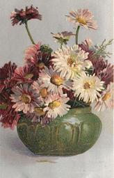 Keywords: Catherine Klein~Unsigned Pink Daisy Flowers in Green Pot~Silver Back~Emboss~1908 gerardboer23 Gerard Boer