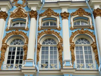 Keywords: catherine's palace st petersburg russia tourism facade palace architecture historically building sculpture relief art fig pillar