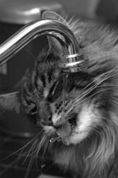 Keywords: cats pet cat animal cat face feline animals mammal licking hangover care water faucet drops drinking mainecoon