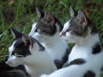 Keywords: cats pets group ears grass alert cute fluffy animals young curious