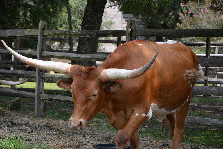 Keywords: cattle long horn bull cow animal pasture farm horned livestock beef farming