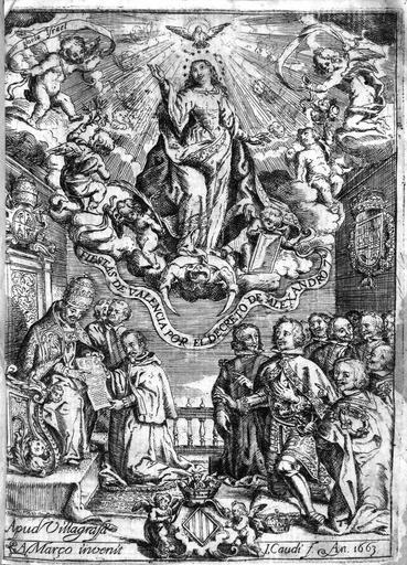 Keywords: Caudi-marzo.jpg es Frontispicio del libro de Juan Bautista Valda Solenes fiestas que celebró Valencia a la Inmaculada Concepción de la Virgen María Valencia 1663 Grabado calcográfico 190 x 130 mm firmado Apud Villagrasa/A Março invenir / J Caudí f An 1663 1663 http //bivaldi gva es/es/catalogo_imagenes/grupo cmd path 1004325 responsabilidad_civil on Andrés Marzo y José Caudí PD-old-100 Uploaded with UploadWizard José Caudí |