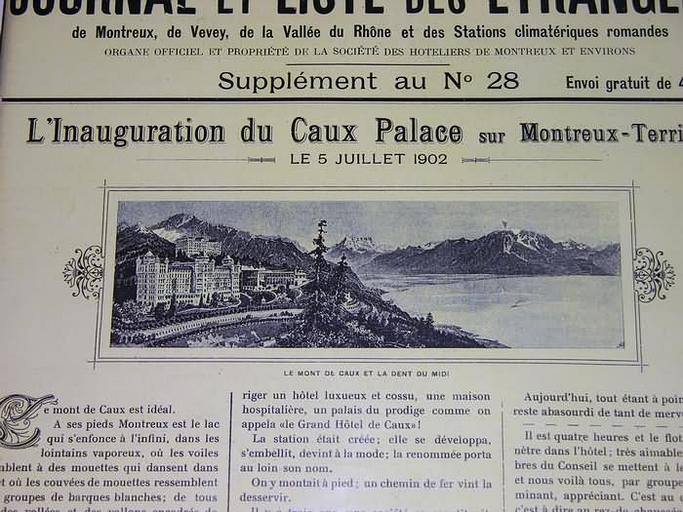 Keywords: Caux Palace 1902.jpg Inauguration of Caux-Palace close to Montreux in Switzerland Newspaper article from 1902 Public Domain PD-old 5 July 1902 History of the canton of Vaud Palace de Caux