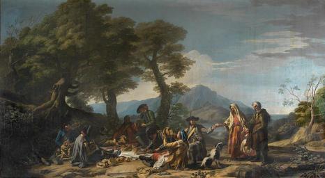 Keywords: Cazadores merendando, de José del Castillo.jpg Artwork Jose del Castillo 1774 Oil on canvas cm 262 497 Institution Prado Madrid accession number P03374 object history credit line https //www museodelprado es/coleccion/galeria-on-line/galeria-on-line/obra/cazadores-merendando/ Galería online Museo del Prado PD-old-100 José del Castillo Uploaded with UploadWizard |