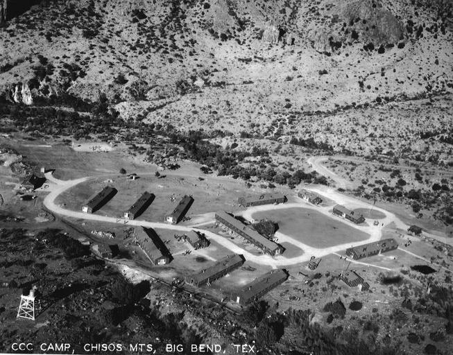 | Keywords: CCC Camp.jpg en View of the CCC camp located in the Chisos Basin Lettered buildings identified as A- Headquarters Building B-Officer's Quarters C-Infirmary D-Recreation Hall E-Mess Hall F-Kitchen G-Radio Station H-Technical Service Quarters I through N-Crew Quarters O-Technical Office P-Chisos Power Light Office less 2014-04-25 09 26 22 http //www nps gov/media/photo/gallery htm id 5A610153-155D-451F-67E9001744C0DE8D http //www nps gov/storage/images/ National Park Service Digital Image Archives Transferred to Commons by Glysiak http //www nps gov/storage/images/ National Park Service Digital Image Archives All photographs and images in this archive National Park Service Digital Image Archives are public domain images You are free to use these images without a release from the National Park Service However the photographs and images must not be used to imply National Park Service endorsement of a product service organization or individual PD-USGov Uploaded with UploadWizard Big Bend National Park |