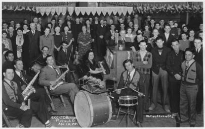 | Keywords: CCC-ID banquet - NARA - 285420.tif Scope and content Group picture at sixth anniversary; includes the band General notes 285420 Local identifier Department of the Interior Bureau of Indian Affairs Pierre Agency 1954 - 1972 NARA's Central Plains Region Kansas City NREA 400 West Pershing Road Kansas City MO 64108 1939 Record group Record Group 75 Records of the Bureau of Indian Affairs 1793 - 1999 Record group ARC 404 Pierre School Agency Photographs compiled 1911 - 1971 Series ARC 285400 File unit File unit ARC Variant control numbers NAIL Control Number NRE-75-PI PHO -99 yes Other versions <gallery> File CCC-ID_banquet_-_NARA_-_285420 tif tif File CCC-ID_banquet_-_NARA_-_285420 jpg jpg </gallery> NARA-cooperation PD-USGov Civilian Conservation Corps Civilian Conservation Corps Indian Division Pierre South Dakota Jazz ensembles from the United States 1939 in South Dakota People of South Dakota Anniversaries April 1939 NARA TIF images with categorized JPGs |