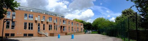 Keywords: CCF Panorama.jpg Uploaded with en wp UW marker 2012 09 13 A panorama of the school building own 2012-06-14 Djharwood cc-zero Finchley