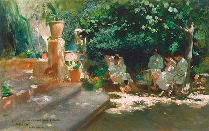 Keywords: Cecilio Pla Ladies in the Garden.jpg Ladies in the Garden Oil on canvas 42 1 x 66 4 cm Inv CTB 1997 93 Institution Museo Carmen Thyssen http //www carmenthyssenmalaga org/ ~ 1910 Cecilio Plá y Gallardo 1860 “1934 PD-old-70-1923 Paintings in the Museo Carmen Thyssen Málaga Cecilio Plá 1910s paintings People in gardens in art |